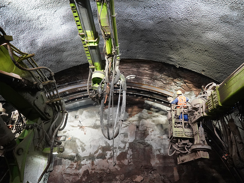 LH-150Y掘進支護一體機組是藍海智能針對隧道掌子面施工開發集掘進開挖、支護、噴漿、打錨桿作業等功能于一體的集成化施工,實現掌子面全工序作業設備。具備非爆掘進、鉆爆掘進、出渣、立架、打鎖腳和錨桿、注漿、噴漿等進行平行作業能力,能滿足鐵路單洞雙線隧道、高速隧道、市政隧道、鐵路小斷面隧道施工作業,一次掘進隧道斷面尺寸寬度14-16米,掘進高度7.8米以上,相比現在采用單工序循環作業方式,每班提升效率50%~60%。